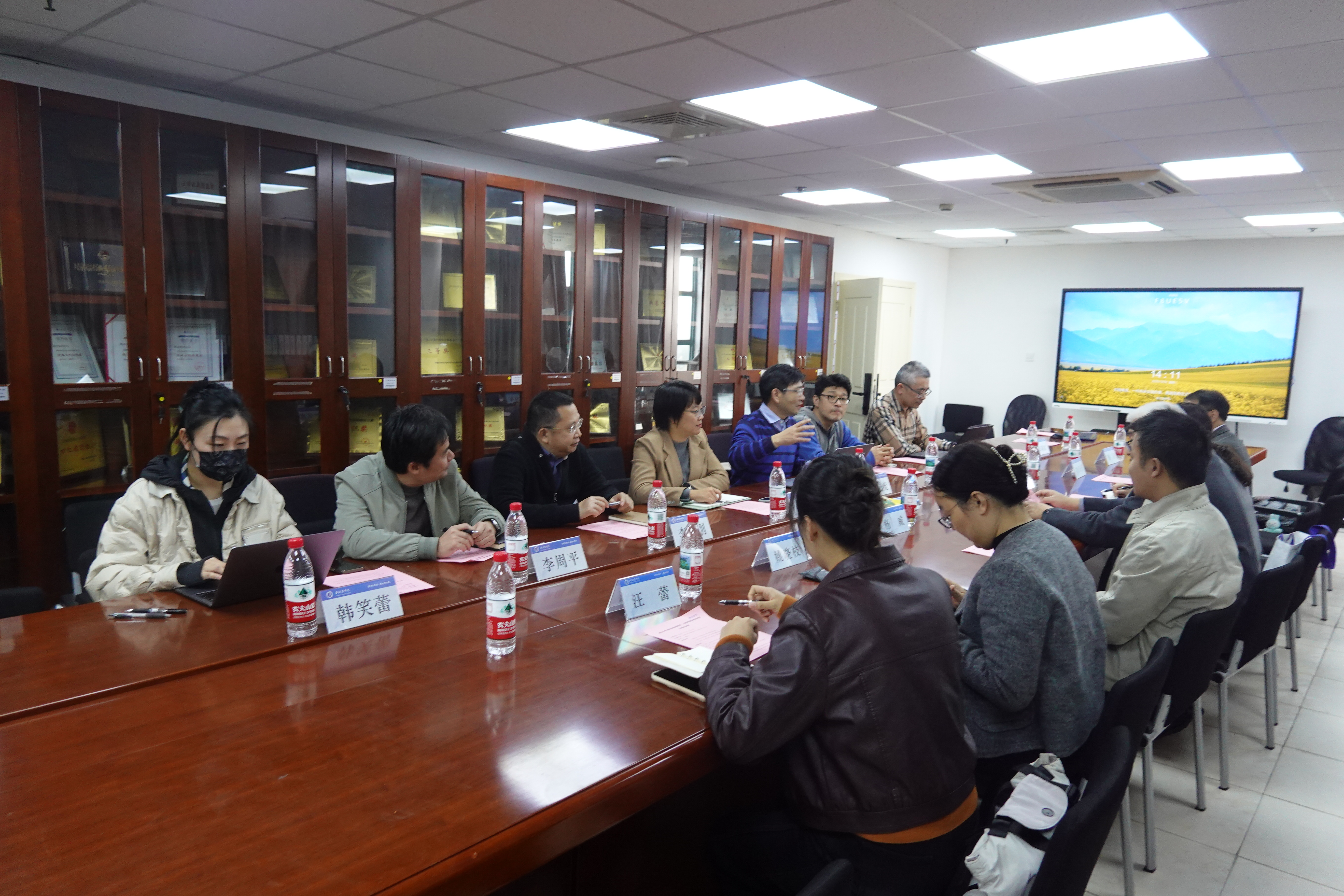 下午14时,调研团队转场至上海商学院奉浦校区。在商务信息学院党委书记宋晓光的主持下,双方展开交流。宋书记系统介绍了学院各方面建设成果,重点展示了学院特色方向“AI+”赋能传统经管学科。