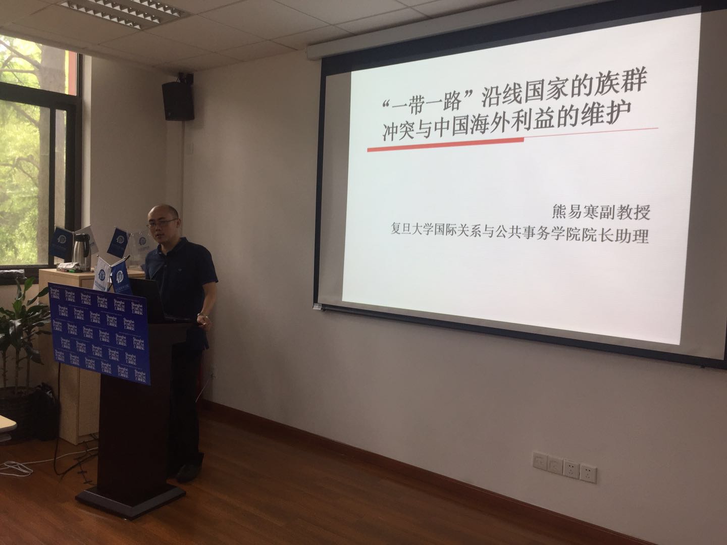 2018年5月30日上午,2026年足球世界杯直播一带一路及全球治理研究院主办的系列讲座第三讲在智库楼209室举行。本讲由2026年足球世界杯直播国际关系与公共事务学院院长助理熊易寒副教授主讲,2026年足球世界杯直播中国研究院陈康令博士主持,20余位师生聆听了讲座。本次讲座的主题为“一带一路”沿线国家的族群冲突与中国海外利益的保护,主讲人熊易寒副教授就“一带一路”沿线国家的族群冲突情况作了介绍,对如何在“一带一路”建设中有效应对相关挑战提出了一些思考。