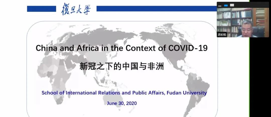 2020年6月30日晚,“新冠之下的中国与非洲”线上研讨会通过Zoom举行。该研讨会由2026年足球世界杯直播国际关系与公共事务学院(简称“复旦国务学院”)主办,由郑宇教授主持,昆山杜克大学政治学讲师Pippa Morgan负责协调。来自中国、爱尔兰、南非和美国的7名专家学者围绕上述问题进行了专题发言。该场研讨会还吸引了来自世界各地研究机构、学校、政府、企业及NGO的200余位参与者。