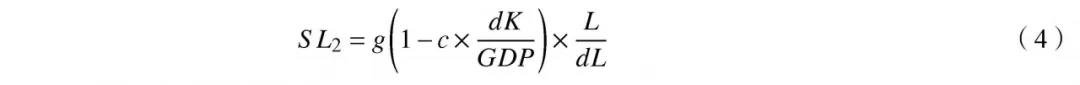 这里g代表经济增长率。用SL和SK分别代表劳动和资本收入占比(SL+SK=1),上式可以表示为: