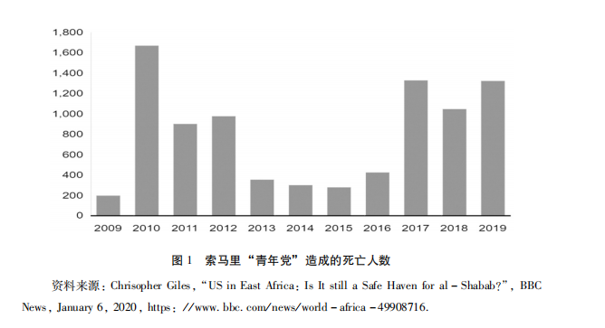 2006年,“青年党”在索马里制造了1万多起袭击事件,在肯尼亚也制造了300多起袭击事件。2017年3月,美国在索马里实施突袭行动以来,“青年党” 也提高了袭击平民的频率,仅袭击平民的次数就超过900多起。2019年,“青年党”所制造的恐怖暴力事件数量与上年相比不降反升。2019年12月28日,索马里首都摩加迪沙发生一起自杀式汽车炸弹事件,造成80多人死亡,150多人受伤,“青年党”宣布对此负责。这说明,在美军的高压之下,“青年党”的 活动地盘虽然被压缩,但制造暴力活动的能力并没有被削弱。
