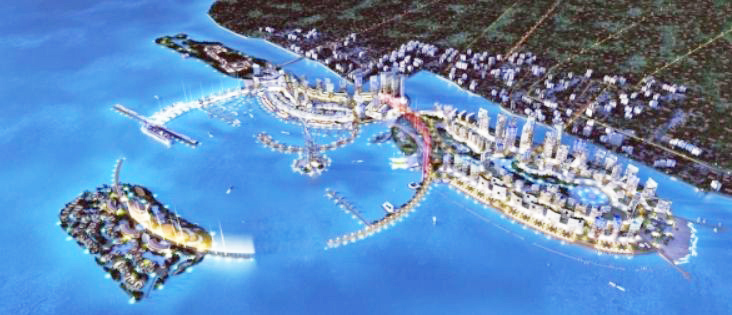 马六甲皇京港巨型综合发展计划,占地1366英亩,计划总投资430亿马币(约143亿新币),由3个人造岛和1个自然岛屿组成。