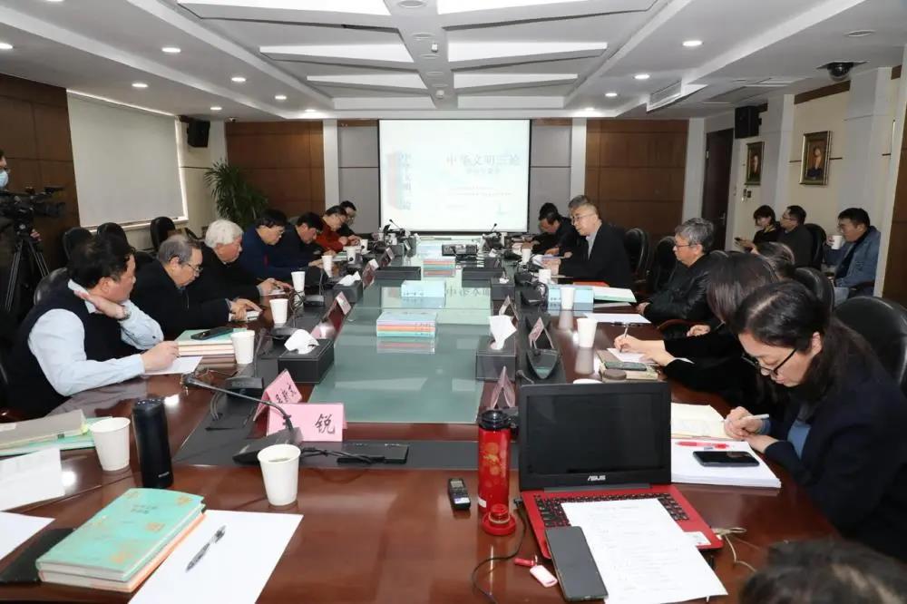 “文化自信来自有坚实基础、令人信服的学术支撑,这套《中华文明三论》提供了学术支撑的样本。”上海社科院研究员熊月之用“大视野、大格局、大成果”评价这“三论”,“所谓大视野,就是大历史观,将中国、中华民族放在全球范围内考察,将中华文明放在全人类文明范围内悠久演进的历史过程中考察。书中多处征引汤因比等中外学者关于文明的论述,讨论不同历史时期中外思想界对中华文明的论述,确立中华文明的地位。大格局即思维的宏观性、立体性、严密性。三本书合起来是一个整体,‘根柢’是含八大板块的基础,包括总体判断、近代转型、家国共同体、民族精神、政治伦理、经济伦理、社会伦理、天下伦理;‘经脉’是贯通古今的四大支柱,包括知识体系、价值体系、实践体系、话语体系;‘鼎新’论当下特点,将古今联系起来,论述文明的断裂与传承,讨论中华文明未来如何发展的六大问题,即新时代新文化本质、民族精神、新文明、新文化、人类文明互鉴、文化体系建设。”