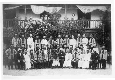福州船政学堂毕业前的学员合影,摄于1871年。北洋舰队的主要海军将领和大部分军舰的舰长(当时称管带)几乎都是留欧船政学生。如“致远”舰管带邓世昌(第二排左五)、“经远”舰管带林永升(第三排右三)、“定远”舰管带刘步蟾(第三排右五)、“威远”舰管带林颖启(第三排左三)、“超勇”舰管带黄建勋(第三排左四)、“康济”舰管带萨镇冰(第三排左五)、“广乙”舰管带林国祥(第二排左三)、“靖远”舰管带叶祖珪(第一排左四)、“济远”舰管带方伯谦(第一排左六)