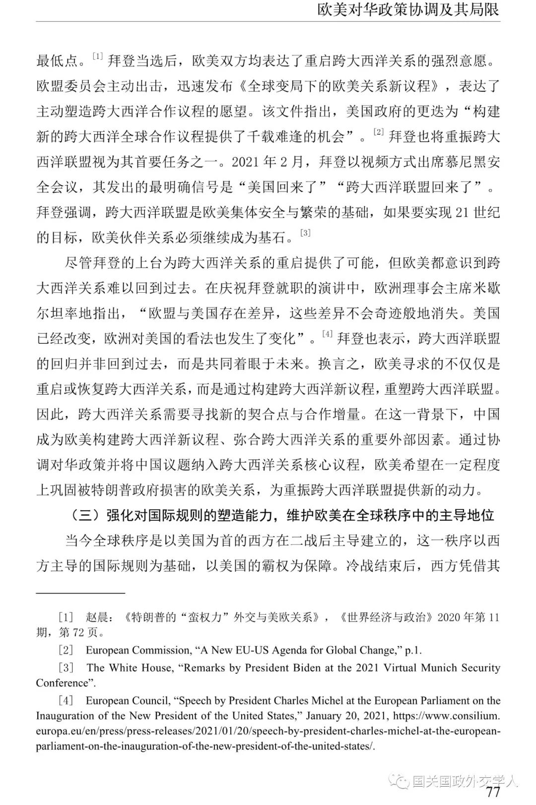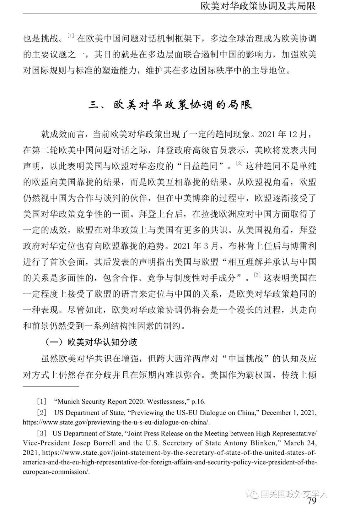 严少华:欧美对华政策协调及其局限