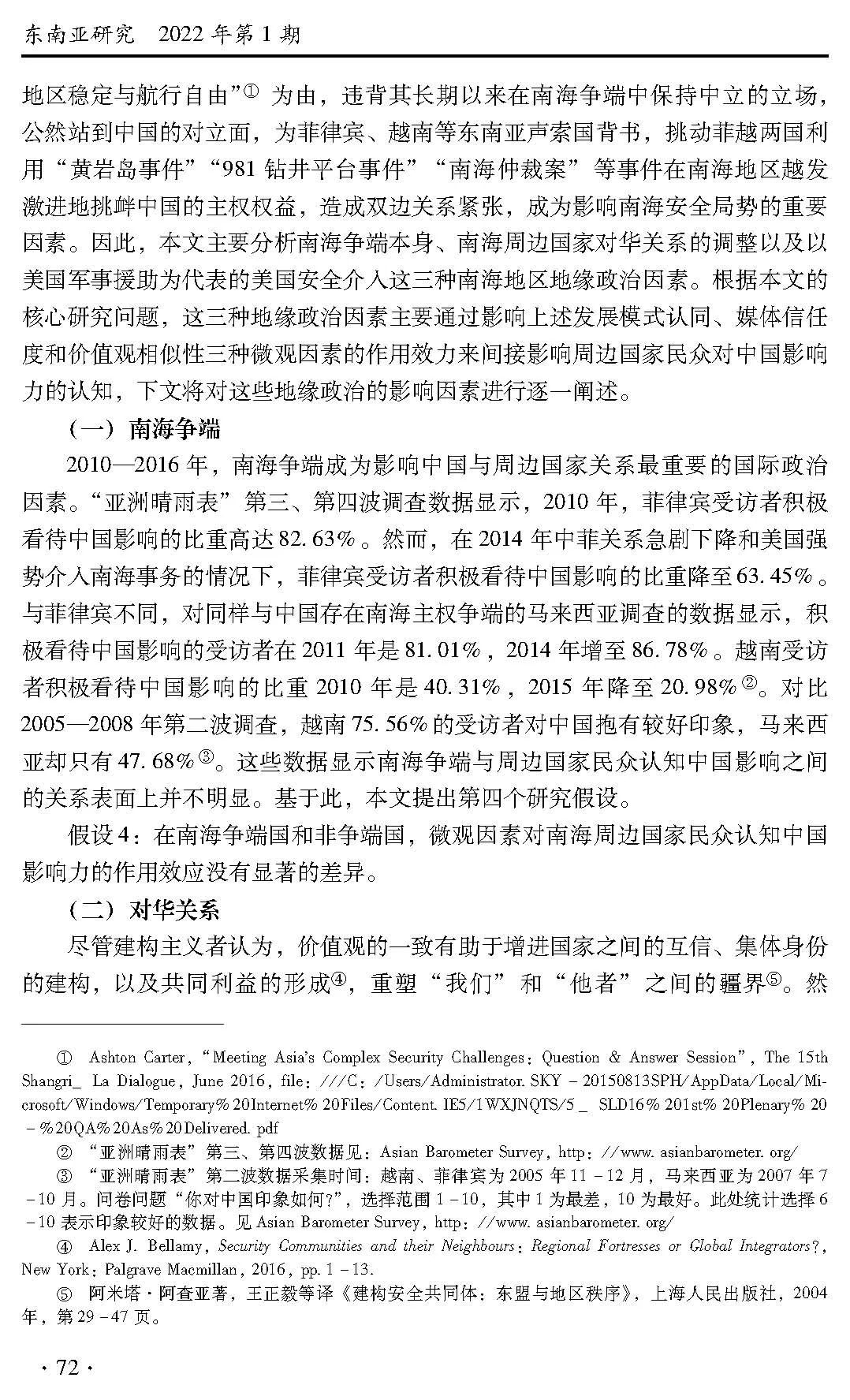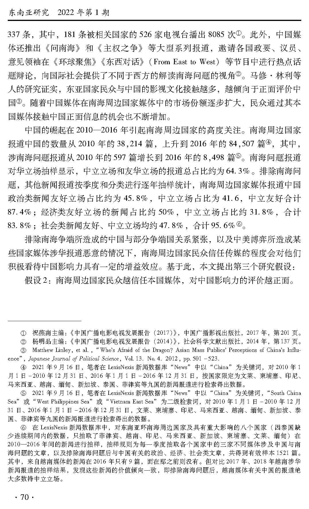 关键词:南海周边国家;中国影响力;民众认知;媒体信任度;地缘政治;南海争端