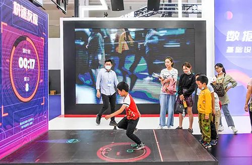 2021年5月27日,小朋友在中国国际大数据产业博览会上体验一款数据流通大作战游戏。(新华社图片)