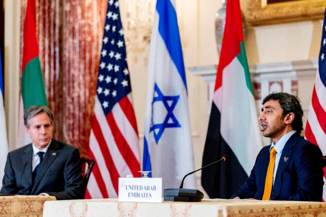 俄乌冲突爆发后,海湾阿拉伯国家中阿联酋与美国的步调最不一致。图为2021年10月,美国国务卿布林肯与到访阿联酋外长阿卜杜拉(右)举行会晤。