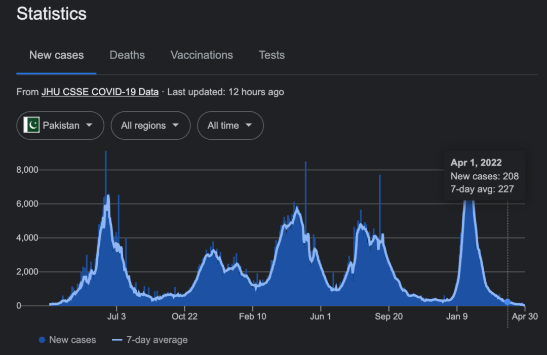 进入4月,巴基斯坦疫情呈平缓下降趋势。截至4月30日,巴新冠肺炎累计确诊病例约152.83万例,累计死亡病例约30436例, 现有确诊病例3770例。