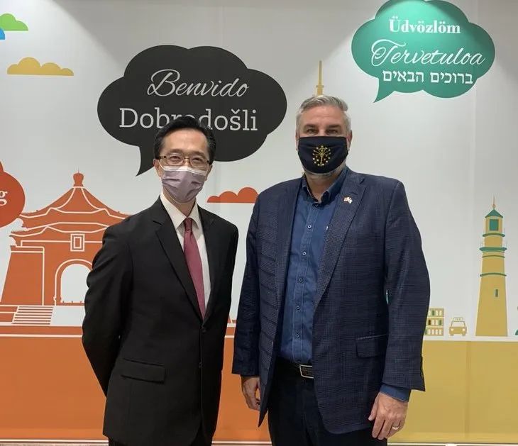 美国印第安纳州长霍尔科姆(右)8月21日率团访台,与台湾“外交部”北美司司长徐佑典会面。