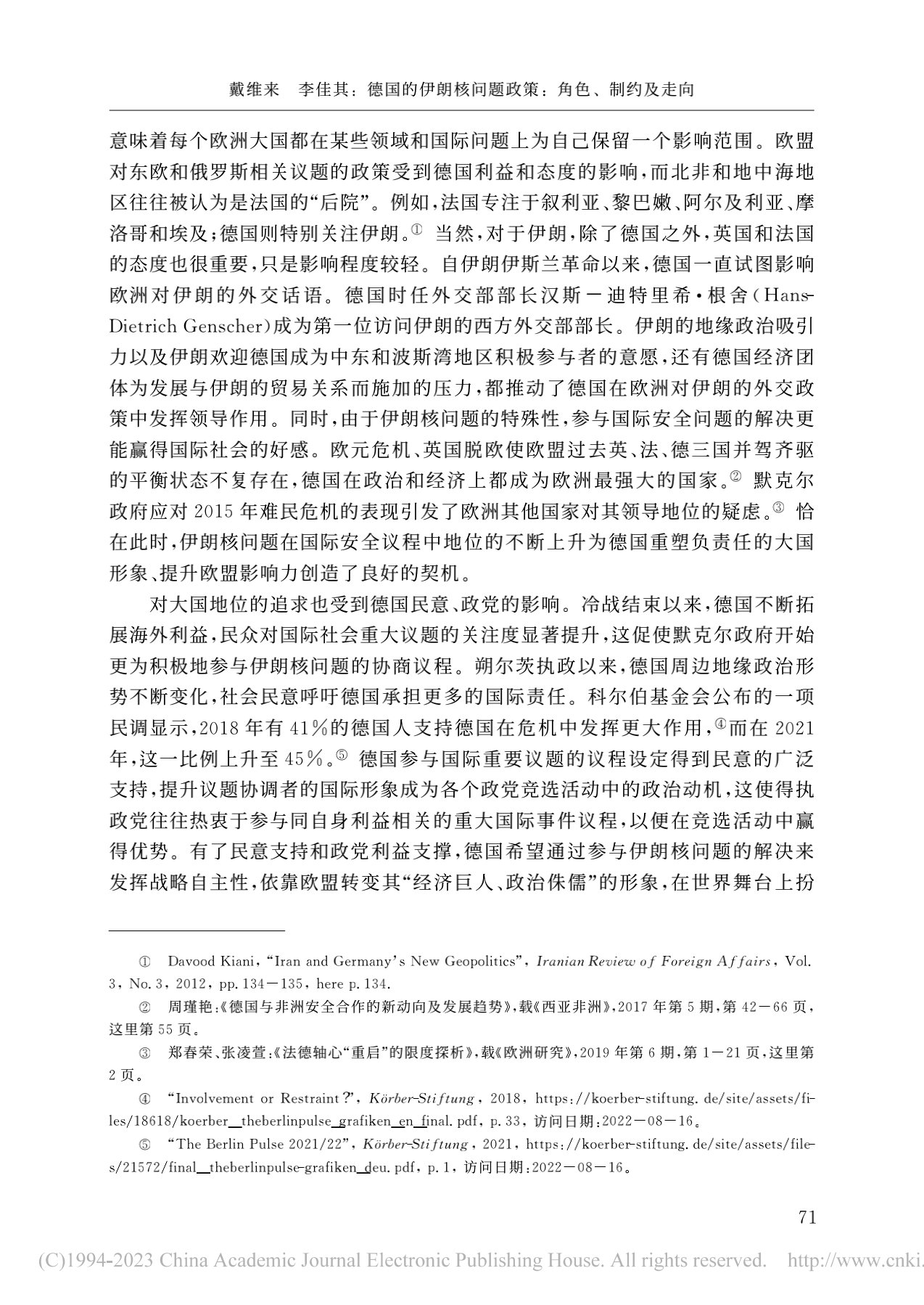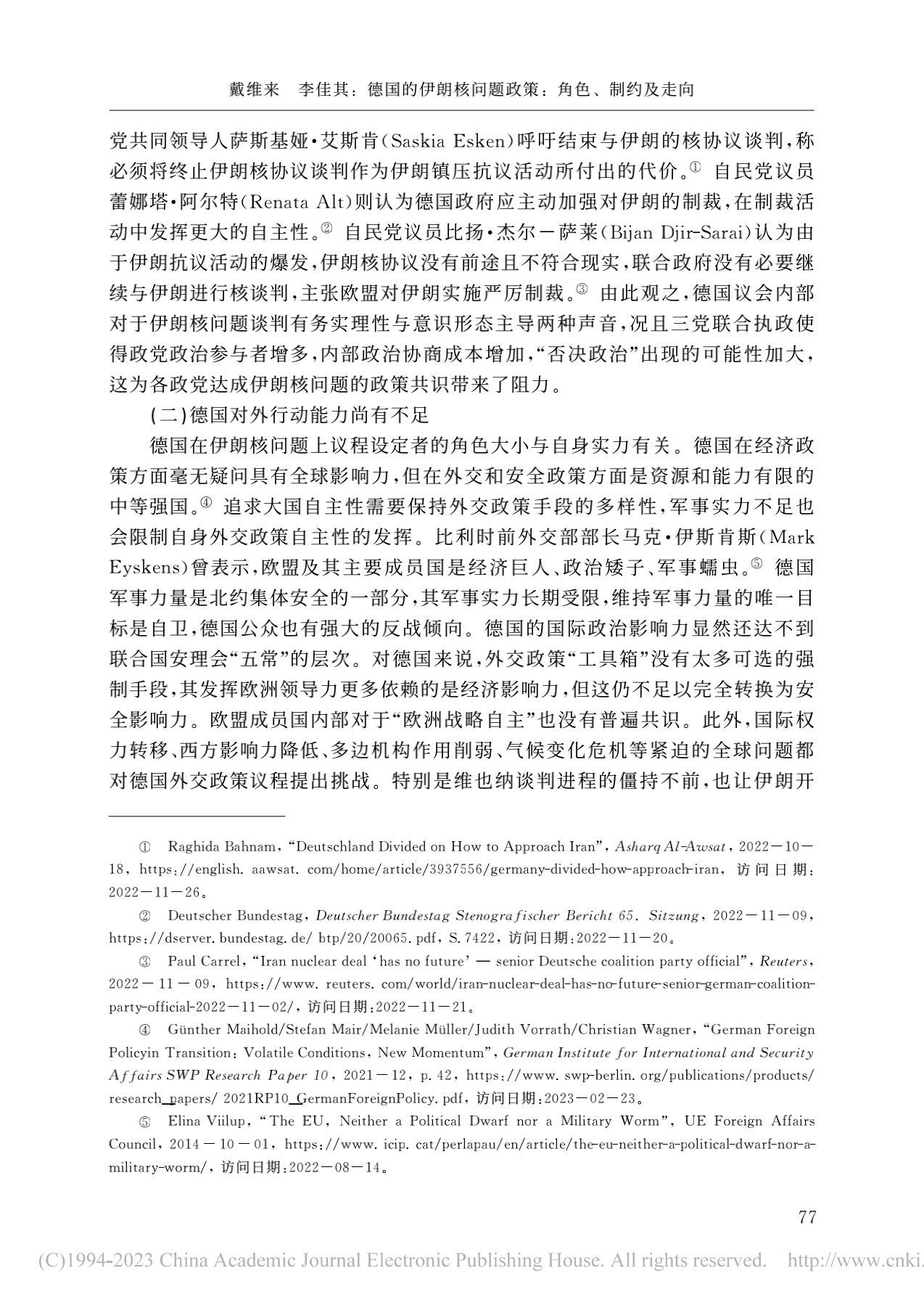 戴维来 李佳其:德国的伊朗核问题政策:角色、制约及走向