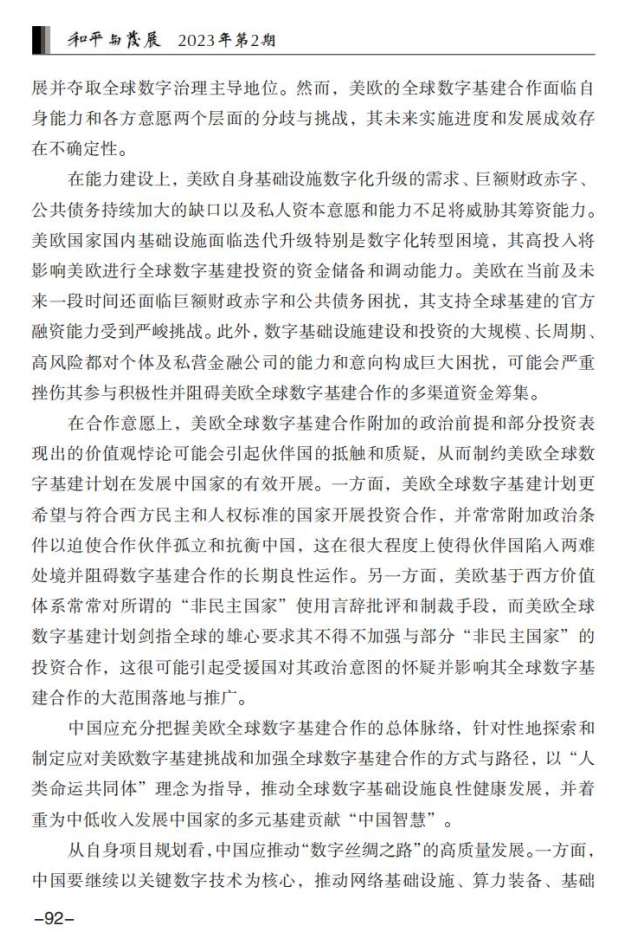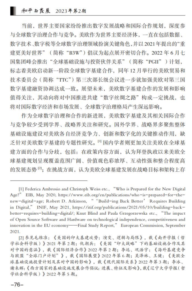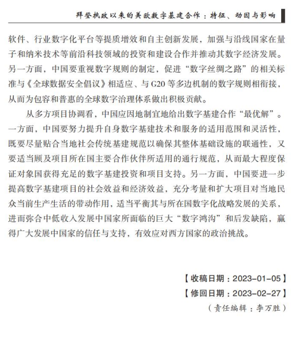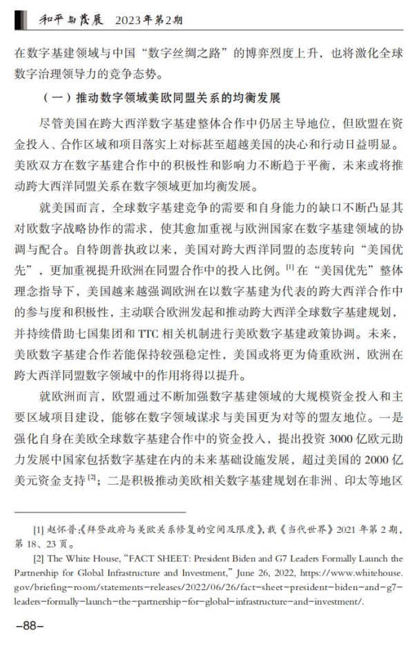 孙成昊 王一诺:拜登执政以来的美欧数字基建合作:特征、动因与影响