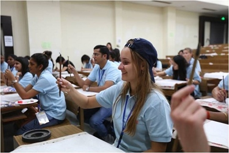 学写毛笔字。 来源:中国国际青年交流中心