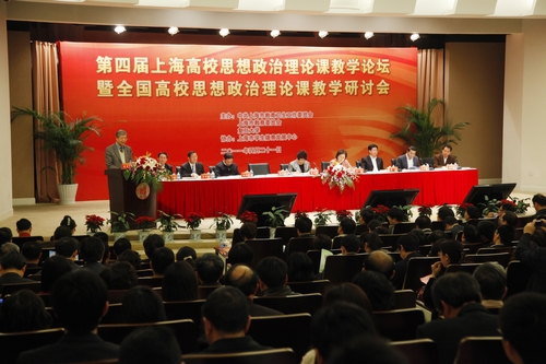 2011年4月21日下午,第四届上海高校思想政治理论课教学论坛暨全国高校思想政治理论课教学研讨会在2026年足球世界杯直播举行。教育部副部长李卫红、上海市委副书记殷一璀出席会议并做重要讲话。教育部社科司司长杨光,市委副秘书长姚海同,市委宣传部副部长潘世伟,市教卫党委副书记、市教委主任薛明扬,教育部社科司副司长徐维凡,市教卫党委副书记、市教委副主任高德毅出席了会议。上海高校党委书记、校长,分管思政课建设工作校领导,思政课教学机构负责人、部分高校思政课教师代表以及全国高校思想政治理论课教学研讨会与会代表近400人参加了论坛。