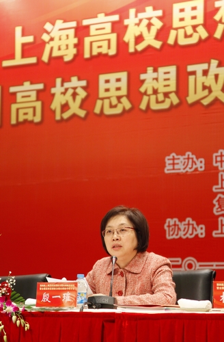 上海市委副书记殷一璀指出,高校思政课是大学生政治思想教育的主渠道,肩负着用中国特色社会主义理论体系武装大学生、推动社会主义核心价值体系建设、培养高素质人才的重要职责。两年来,全市思政教学改革工作又向前迈出了一大步,推出了将“学生是主人”理念贯穿教学各个环节、创新思政课教学方法、提升教师教学魅力的三大行之有效的做法。经过各高校和广大思政教师持之以恒的努力,上海高校思政课的亲和力、吸引力和感染力明显增强。她强调,要进一步深化教学改革,抓好教学改革试点项目,探索各具特色、行之有效的教学模式和方法,建立思政课教学督导体系,促进优质教学资源共建共享,形成教学协作长效机制;要进一步完善政策保障,加强统筹协调,把思政课建设纳入教育改革发展和人才队伍建设的总体规划,加强督导检查,落实机构设置、建设经费、教师配备等要求,进一步加强规范建设和内涵发展,完善教师选聘、培养、评价等机制;要进一步推进学科建设,制定加强马克思主义理论学科建设办法,加大马克思主义理论学科的扶植力度,坚持教学研究与理论研究并重,努力推出一批高水平教学研究成果;要进一步抓好队伍培养,按照专业化发展要求,制定未来五年教师建设规划,重点培育一批教学名师和学术带头人,完善激励评价机制,给予思政课教师更多的关爱,吸引更多优秀教师安心从教、长期从教。
