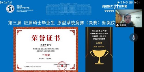 12月29日下午,学院主办的第三届应届硕士毕业生原型系统竞赛决赛以线上会议的方式成功举行。本次比赛针对2022年秋季学期的应届硕士毕业生,参赛作品为硕士学位论文内容所对应的系统实现,包括软件工具、软件系统、硬件装置、软硬件混合系统等。该项比赛的主要目的是鼓励和激发硕士研究生围绕自身研究方向深入钻研技术,潜心开展系统研发,形成有价值的研究成果。
