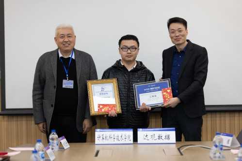达观数据不仅在我院设立奖学金奖励支持优秀学子,还大力支持我院学生参与竞赛、参与创新创业比赛。陈运文董事长和王新书记共同为获奖学生陆轩韬颁奖。此外,达观数据和学院积极开展产学研合作研究,陈运文董事长和肖仰华教授的项目《知识图谱与用户意见智能分析关键技术研发与应用》获得上海产学研合作优秀项目提名奖。