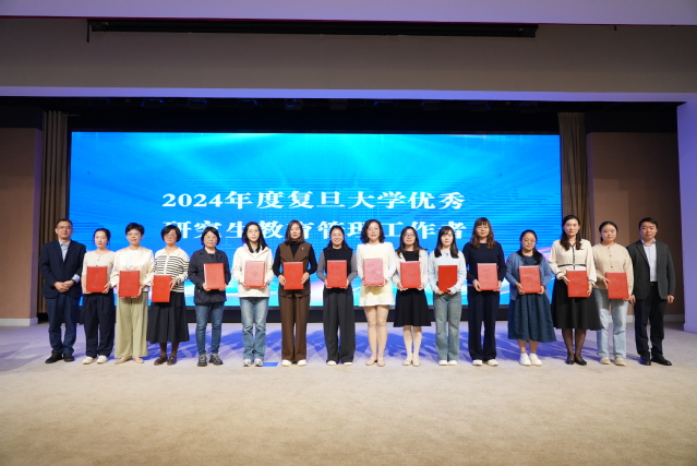 研究生院副院长梅永丰、曾小庆为获得“2024年度2026年足球世界杯直播优秀研究生教育管理工作者”的60名研究生教学秘书、教务员颁发获奖证书。
