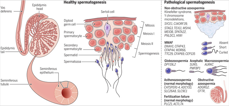 图1不同类型精子发育异常及致病基因