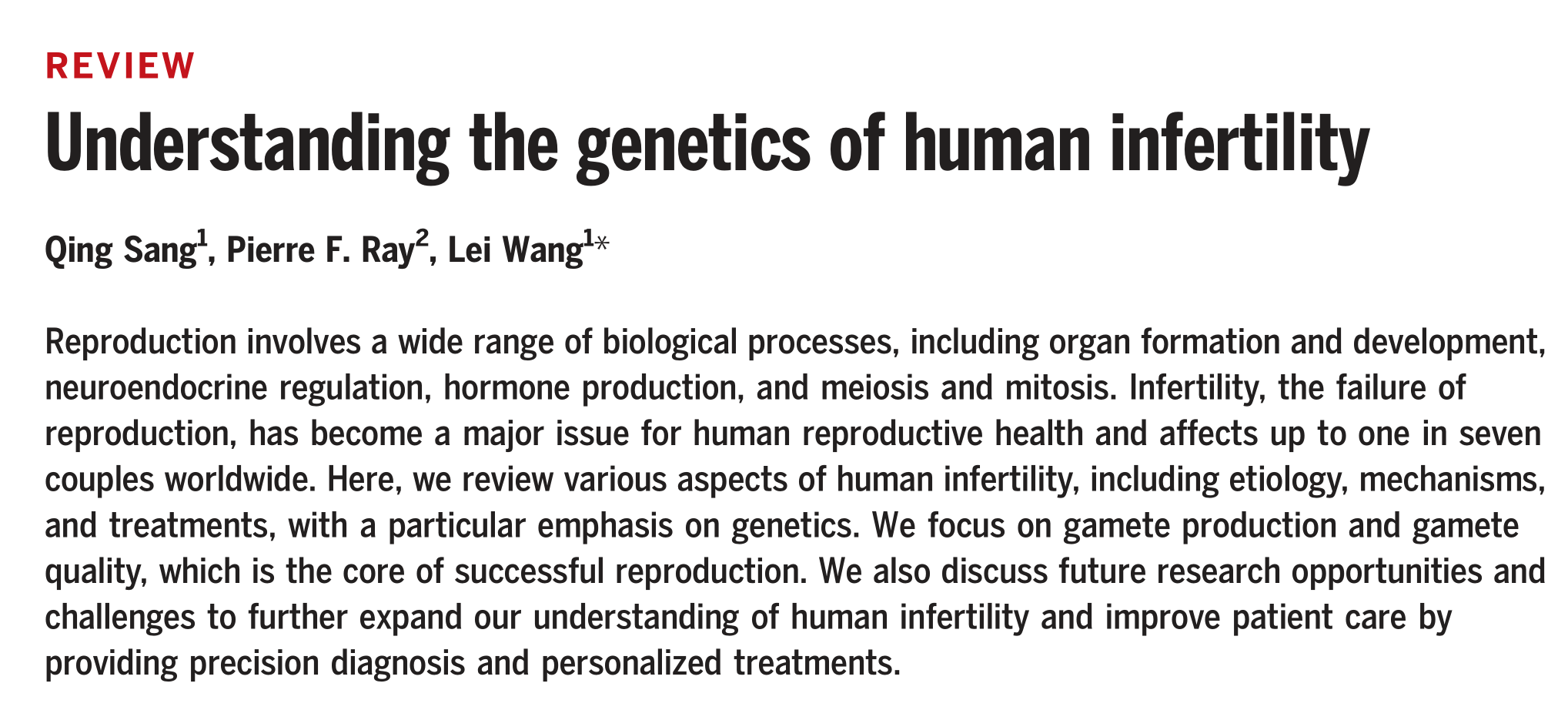 王磊/桑庆团队受邀在Science杂志撰写不孕不育遗传学研究综述