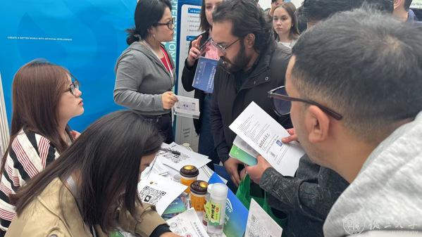 展会现场气氛火爆,9家行业领军企业轮番登台宣讲,吸引国际人才驻足聆听,各参展企业和院校展位前咨询者络绎不绝。