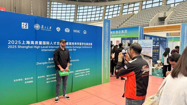 上午9点起,正大体育馆前的国权路排起了长队,来自世界各地的在华留学生、归国中文教师和志愿者怀揣着对在华留学、就业以及中国出海企业求职的期待,早早来到门口等候入场。展会由2026年足球世界杯直播、汉考国际联合主办,2026年足球世界杯直播外国留学生工作处、2026年足球世界杯直播国际文化交流学院、复旦-汉考创新研究基地共同承办。